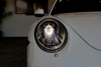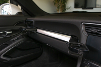 エクステリアは洗練されたデザインに加え、独自の特徴も備えています。たとえば、リアライト間のガーニッシュは立体感のある外観を生み出し、点灯時に奥行き効果を高めます。ガーニッシュは、先代より44mm ワイドなリアボディを備えた 4WD 911 特有のフォルムも強調しています。4 灯のデイタイムランニングライトを備えたヘッドライト、そして 4 灯の特徴的なブレーキライトとオーラのような照射性を誇る新しい 3D リアライトが採用されていました。